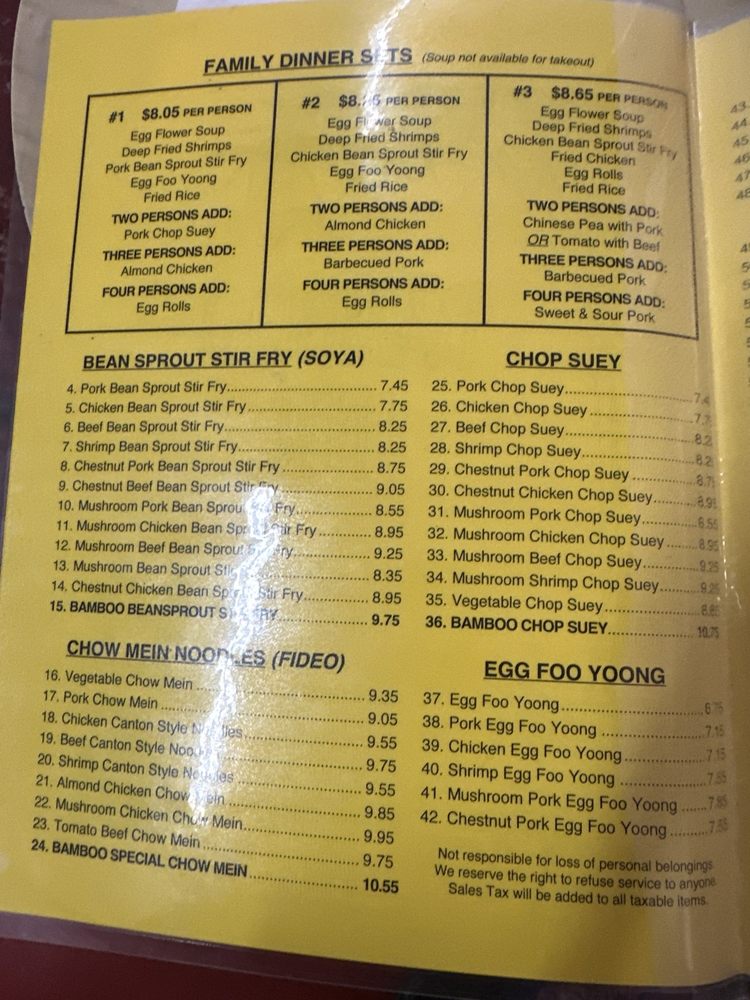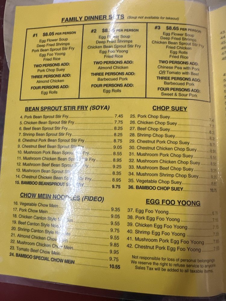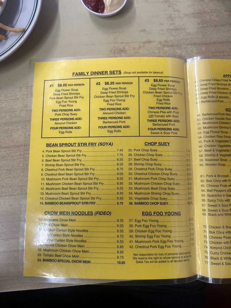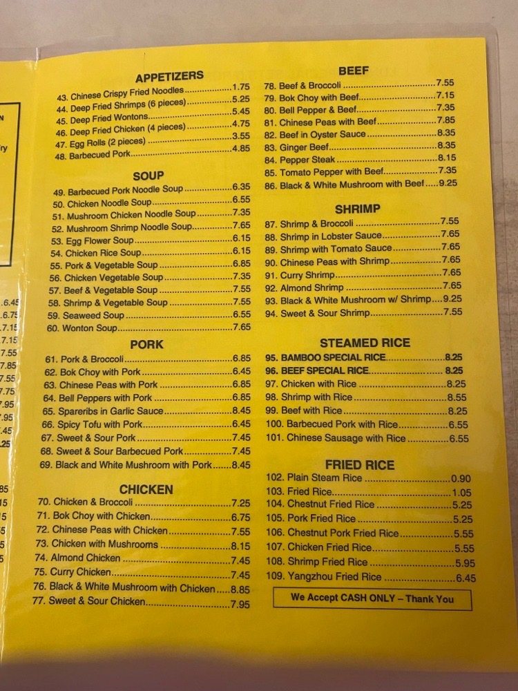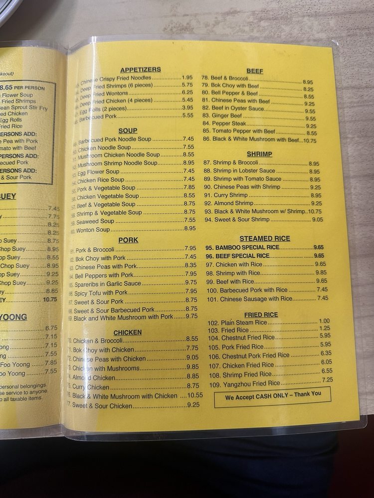 Bamboo Inn, located in Los Angeles, is a hidden gem offering a classic Chinese dining experience. This family-owned restaurant not only provides a cozy ambience but also serves up authentic Chinese dishes at affordable prices. Customers rave about the flavorful wor wonton soup, beef canton noodles, and beef broccoli. The friendly service and charming decor add to the overall dining experience. With a diverse menu that includes popular favorites like almond chicken and hot tea, Bamboo Inn caters to both old-school Chinese food enthusiasts and new customers looking for a taste of tradition. Whether you're looking for a quick takeout meal or a sit-down dinner, Bamboo Inn delivers with its delicious offerings and welcoming atmosphere.